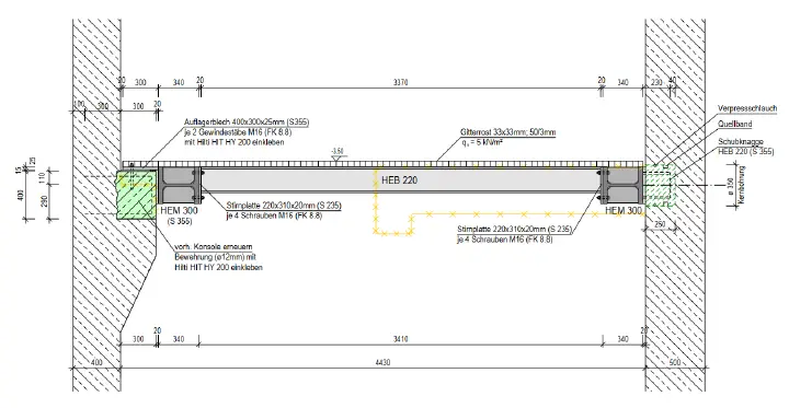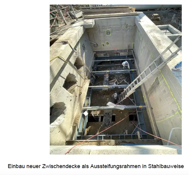• Abbruch und Einbau neuer Aussteifungselemente im bestehenden Schachtbauwerk mit provisorischer Abstützung