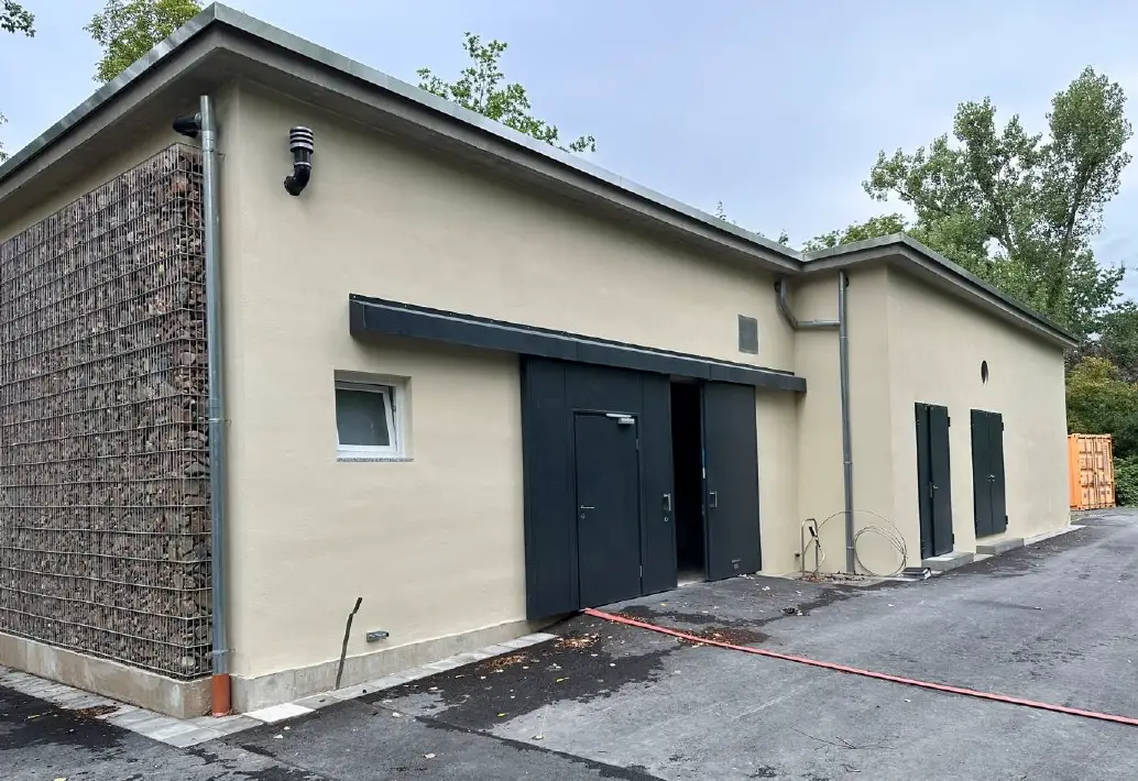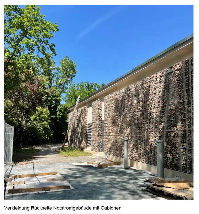 Ergänzend entstand ein Notstromgebäude mit Kabelkeller auf Mikropfahlgründung.