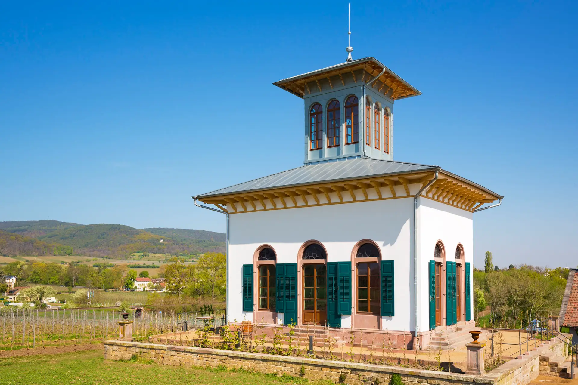 Das Teehaus wurde durch einen Brand zerstört und wurde wiederaufgebaut. Die neue Konstruktion wurde auf Grundlage historischer Fotos, Untersuchungen und bestehender Unterlagen möglichst originalgetreu rekonstruiert.
